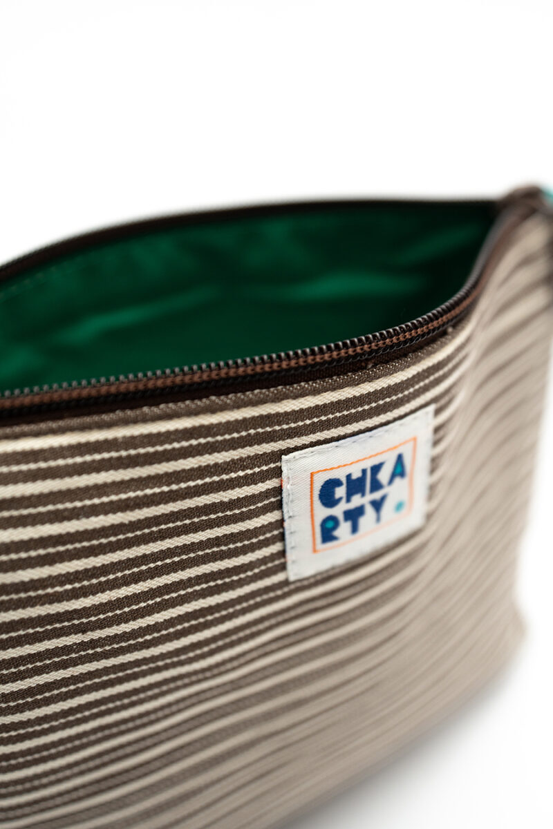 Pensée pour les essentiels du quotidien, la Petite Pochette (22 × 15 × 3 cm) accueille câbles, clés, maquillage ou cartes. Ultra-compacte, doublée, et fabriquée en tissu recyclé, elle s’utilise seule ou glissée dans un sac. Fermeture zippée et dragonne intégrée pour un transport facile.