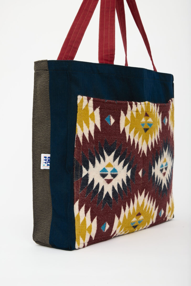 Pensé pour les grandes journées, les virées au marché ou les week-ends improvisés, notre grand tote bag (57 × 49 × 10 cm) allie praticité XXL et éthique affirmée. Fabriqué à la main à partir de textiles revalorisés, il incarne un mode de vie engagé et créatif.
