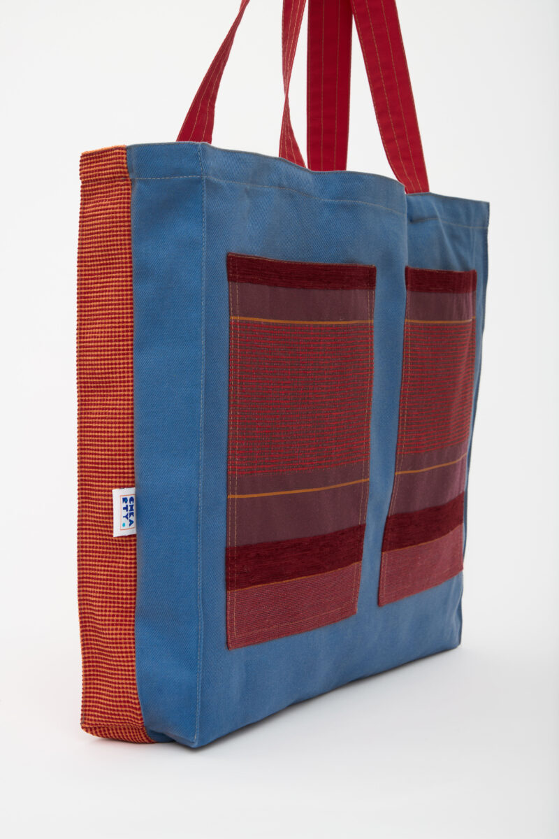 Pensé pour les grandes journées, les virées au marché ou les week-ends improvisés, notre grand tote bag (57 × 49 × 10 cm) allie praticité XXL et éthique affirmée. Fabriqué à la main à partir de textiles revalorisés, il incarne un mode de vie engagé et créatif.