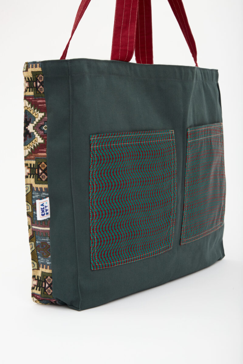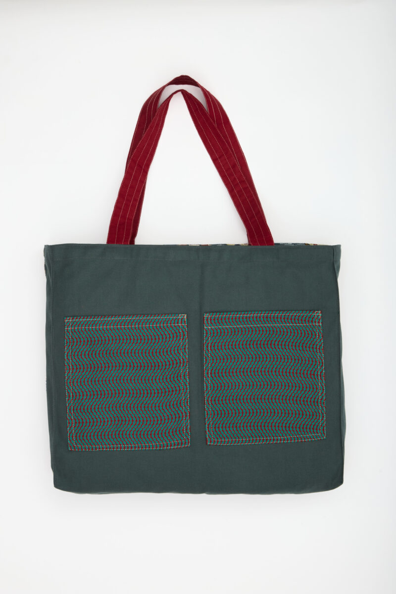 Pensé pour les grandes journées, les virées au marché ou les week-ends improvisés, notre grand tote bag (57 × 49 × 10 cm) allie praticité XXL et éthique affirmée. Fabriqué à la main à partir de textiles revalorisés, il incarne un mode de vie engagé et créatif.
